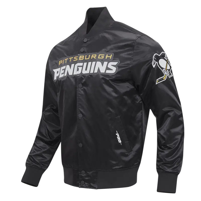 NHL PITTSBURGH PENGUINS CLASSIC MEN’S SATIN JACKET (BLACK)