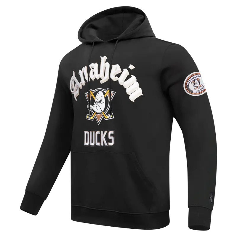 NHL ANAHEIM DUCKS OLD ENGLISH MEN’S PO HOODIE (BLACK)