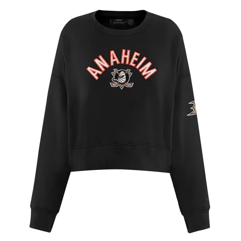 NHL ANAHEIM DUCKS CLASSIC WOMEN’S CROPPED PULLOVER HOODIE (BLACK)