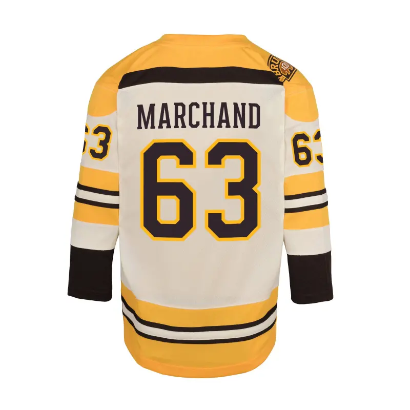 Boston Bruins 100th Anniversary Replica Alternate Breakaway Jersey – Cream – Brad Marchand – Youth